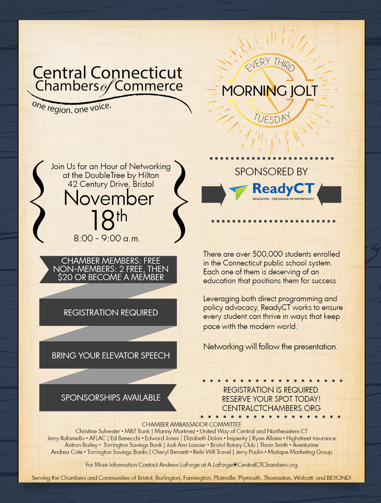 The Morning Jolt takes place the third Tuesday of each month!