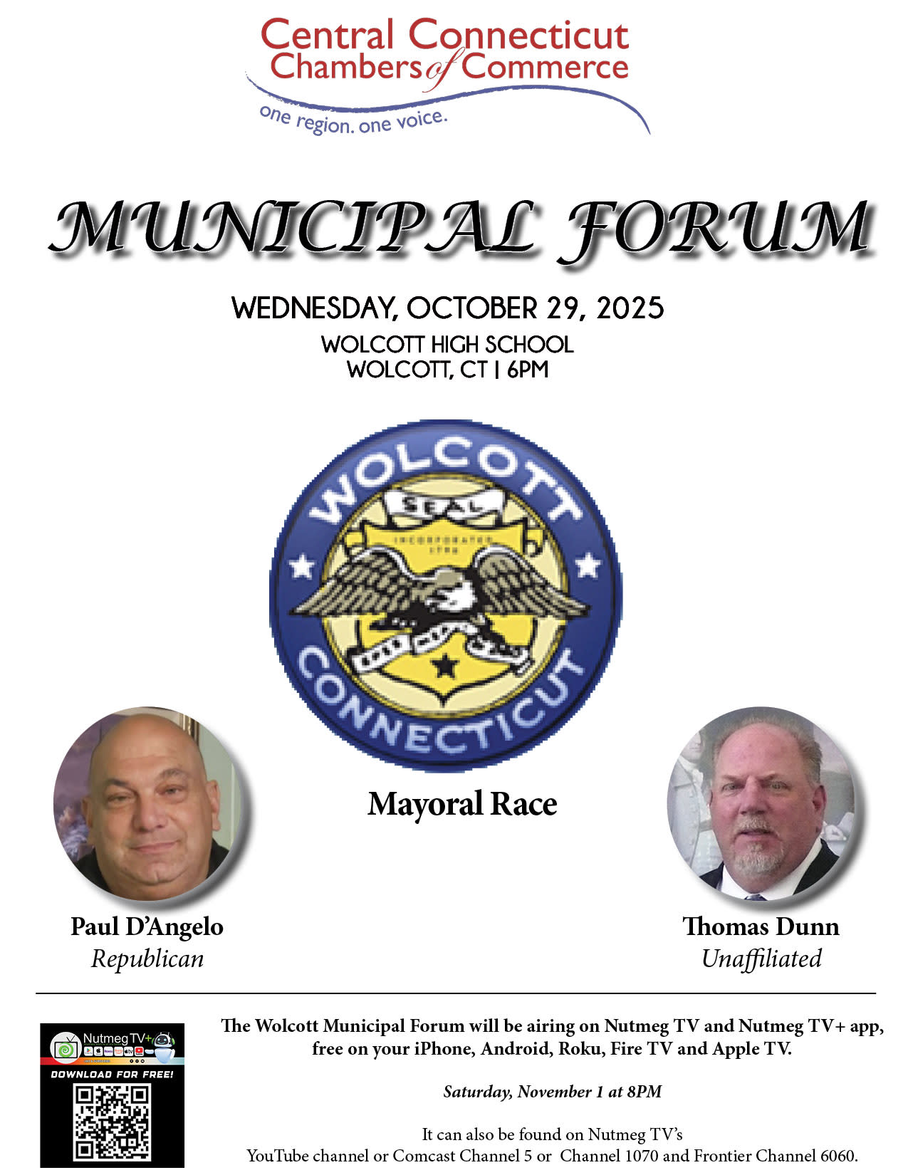 We will be holding a forum for the Mayoral race in the Town of Wolcott. We invite you to come down to Wolcott High School on October 29th at 6pm to hear from both candidates.
